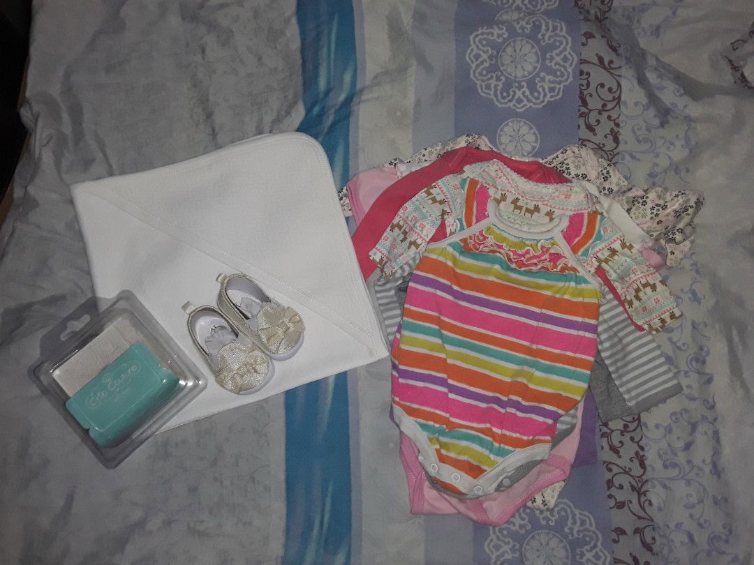 10pcs onesies/frogsuit Bloom Pranela nver been used Baby couture shoes nver been used All are in very good condition Branded po lahat ?? Declutter lang po mamsh 500 pesos lang po yan lahat shipping fee 65-85 pesos.depende sa location ?