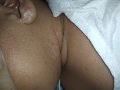 ask your pedia po para sureπ try nyo nalang din po punasan ng basang towel ng tubig then tuyuin po ng maayos. bka po kasi pawis, laway or dried milk po yung naka irritate sa skin ni baby.π