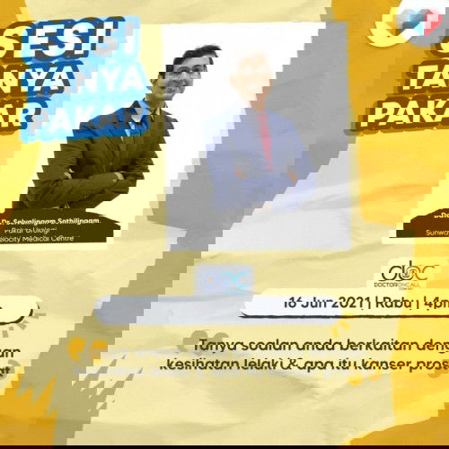 Adakah pasangan anda mengalami kepedihan ketika membuang air kecil? Atau rasa hendak buang air kecil kerap kali pada waktu malam? Atau mempunyai darah dalam air kencing atau air mani? Tanya segala persoalan berkaitan dengan masalah kesihatan lelaki dan apa itu kanser prostat bersama pakar kami iaitu Dato' Dr. Selvalingam Sothilingam, Pakar Urologi , Sunway Velocity Medical Centre pada 16 Jun 2021, hari Rabu jam 4 petang. Anda juga boleh gunakan 'anonymous' atau 'tanpa nama' untuk merahsiakan identiti anda. *NOTA : Segala persoalan diluar topik dan jangka masa yang ditetapkan akan dipadam atau tidak di jawab langsung.