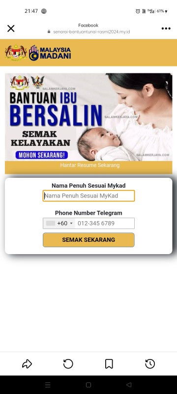 Anyone dapat ads macam ni kat fesbuk, JANGAN ISI APA APA MAKLUMAT YG DIMINTA. Scammer! Tengok link ada .id, pastu tengok bahasa melayu dia yg tak betul. JANGAN PERCAYA tau korang. #advice #ingintahu #SeriusTanya