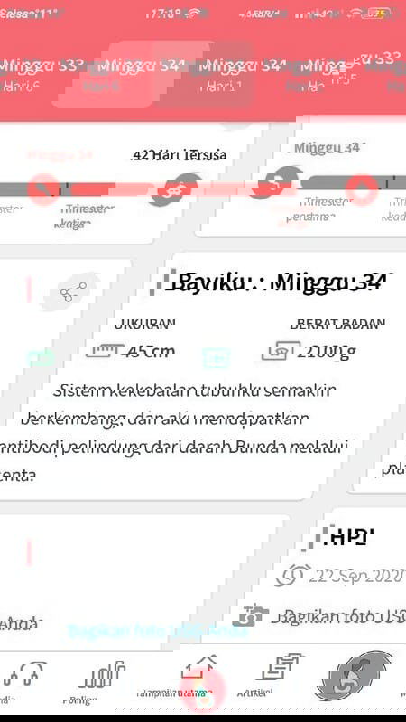 assalamualaikum bunda" aku bumil dengan usia kandungan 34minggu tp pas kemarin USG kata dokternya usia kandungan aku udh 36 minggu padahal pas USG pertama sekitar 5 bulanan yg lalu aku dikasih tau HPL nya dan perkiraan usia kandungan di aplikasi ini sama perkiraan dokter itu sama, nah pas kemarin kenapa beda nya dua minggu yaa? Padahal HPL nya masih tetep di tgl yg sama. Bbj nya 2750gr. maaf yaa bunda, aku hamil anak pertama jd belum terlalu faham. mohon bantuannya๐๐ป