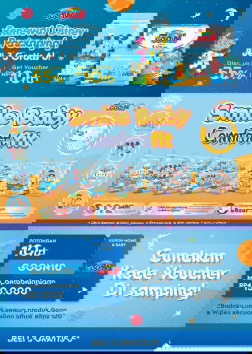 Assalamualaikum bunda, yuuuk merapat yg pakai diapers Goon bnyak promo, diskon 10rbu min belanja 150rbu (kode GOON10) Size NB ------------ GOON Premium Massara Sara Popok Tape NB - 42 Harga: Rp85,000 Beli: https://u.jd.id/tbtFHrq Size S ---------- GOON Premium Massara Sara Popok Tape S - 36 Harga: Rp85,000 Beli: https://u.jd.id/tdt5xim GOON Smile Baby Popok Pants S - 32 Harga: Rp44,900 Beli: https://u.jd.id/tCt5qlL GOON Smile Baby Popok Pants S - 22 Harga: Rp28,000 Beli: https://u.jd.id/tZtFf1X GOON Smile Baby Comfort Fit S-48 Harga: Rp64,900 Beli: https://u.jd.id/t3tFREI GOON Smile Baby Popok Pants S - 120 Harga: Rp120,000 Beli: https://u.jd.id/tHt5uEz Size M ---------- GOON Premium Massara Sara Popok Pants - M 48x2 Harga: Rp155,000 Beli: https://u.jd.id/tZt5HhJ GOON Premium Popok Massara Sara Super Jumbo Pants M-56 Harga: Rp110,000 Beli: https://u.jd.id/tktFyNA GOON Premium Popok Massara Sara Jumbo Pants M - 30 Harga: Rp64,000 Beli: https://u.jd.id/tmtFvAB GOON Smile Baby Popok Pants M - 120 Harga: Rp160,000 Beli: https://u.jd.id/tRtFhpk GOON Smile Baby Comfort Fit M-44 Harga: Rp64,900 Beli: https://u.jd.id/t4tFcvk GOON Smile Baby Comfort Fit M-30 Harga: Rp44,900 Beli: https://u.jd.id/tPtF3uc GOON Smile Baby Popok Pants M - 20 Harga: Rp28,000 Beli: https://u.jd.id/t1tFHyV Size L ---------- GOON Premium Popok Massara Sara Super Jumbo Pants L - 46 Harga: Rp110,000 Beli: https://u.jd.id/tft5uYN GOON Premium Popok Massara Sara Jumbo Pants L -24 Harga: Rp64,000 Beli: https://u.jd.id/tEtF2AJ GOON Premium Massara Sara Popok Pants - L 40x2 Harga: Rp155,000 Beli: https://u.jd.id/t1t56iA GOON Premium Popok Massara Sara Super Jumbo Pants L - 46 Harga: Rp110,000 Beli: https://u.jd.id/tytFFzN GOON Smile Baby Popok Pants L - 120 Harga: Rp185,000 Beli: https://u.jd.id/trt5TtT GOON Smile Baby Comfort Fit L-28 Harga: Rp44,900 Beli: https://u.jd.id/t9tFnsD GOON Smile Baby Comfort Fit L-18 Harga: Rp28,000 Beli: https://u.jd.id/tft5Gn4 Size XL ------------ GOON Premium Popok Massara Sara Super Jumbo Pants XL - 42 Harga: Rp110,000 Beli: https://u.jd.id/t4tFfUq GOON Premium Popok Massara Sara Jumbo Pants XL - 22 Harga: Rp64,000 Beli: https://u.jd.id/tft5Ew6 GOON Smile Baby Popok Pants XL - 120 Harga: Rp199,000 Beli: https://u.jd.id/tUtF4j3 GOON Smile Baby Comfort Fit XL - 38 Harga: Rp64,900 Beli: https://u.jd.id/tmtFeK6 GOON Smile Baby Popok Pants XL - 26 Harga: Rp44,900 Beli: https://u.jd.id/twt5AGZ GOON Smile Baby Popok Pants XL - 16 Harga: Rp35,000 Beli: https://u.jd.id/tGtFTje Size XXL -------------- GOON Premium Popok Massara Sara Super Jumbo Pants XXL - 36 Harga: Rp110,000 Beli: https://u.jd.id/tgtF64f GOON Premium Popok Massara Sara Jumbo Pants XXL - 20 Harga: Rp64,000 Beli: https://u.jd.id/tQt5Si3 #Goon #diapersmurah #bantusharing #firstbaby #diapers