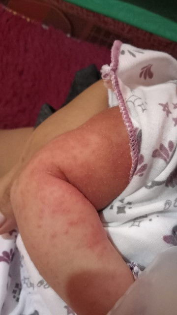 bayi baru 2 minggu bintik merah leher tangan punggung