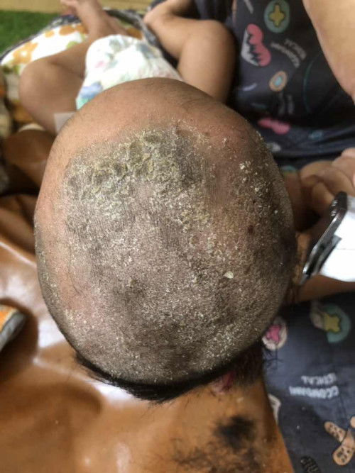 sebelum mandi di pakai kan baby oil 10 menitan mandi di kasih sampo baby sambil di sisir dengan lembut pakai sisir bayi yg bulu " lalu bilas rutin tiap hari sampai hilang