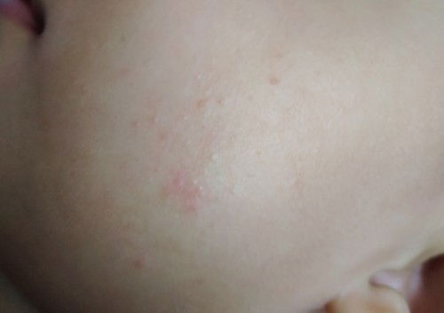 tu macam ruam panas je. sis boleh je sapu krim kat muka anak.