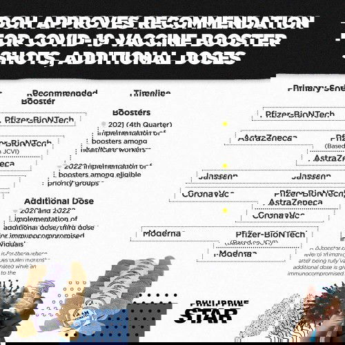 The Department of Health approved the Health Technology Assessment Council's recommendation for booster shots and additional doses of COVID-19 vaccines. The DOH said it has sent an application to the Food and Drugs Administration for emergency use authorization. Source: Philippine Star FB Page