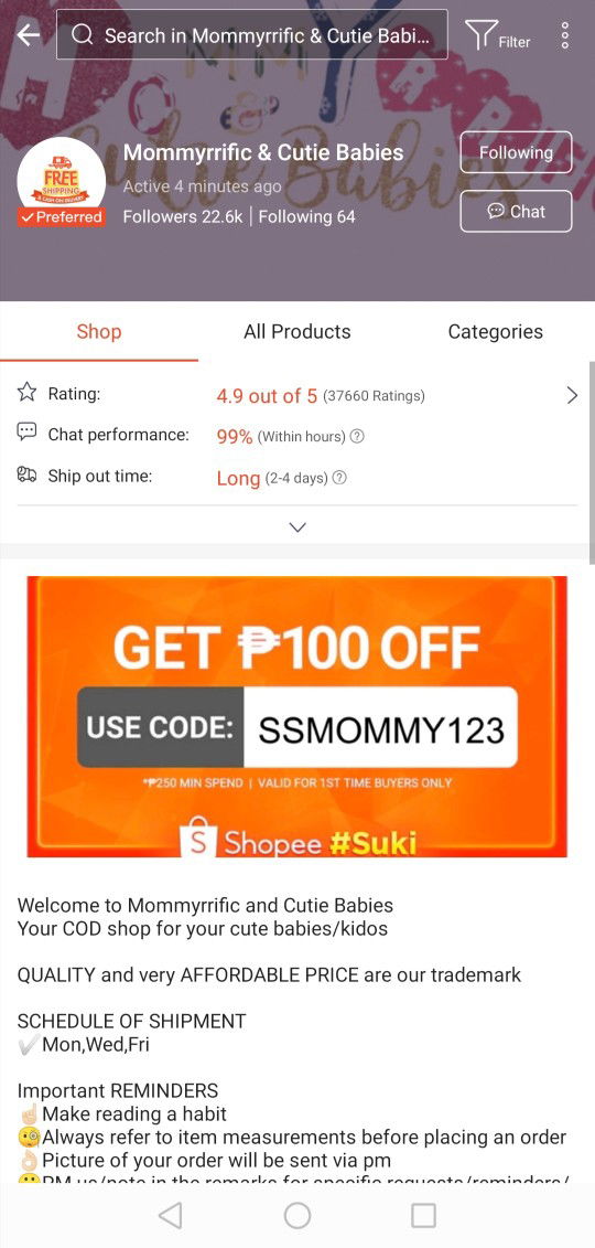 Just found a shop sa shoppee mga momshie, with very affordable ang kanilang mga items for our babies, very responsive pa si seller. Sa mga ftm na looking for budget friendly baby needs follow nyo lang po store nila.