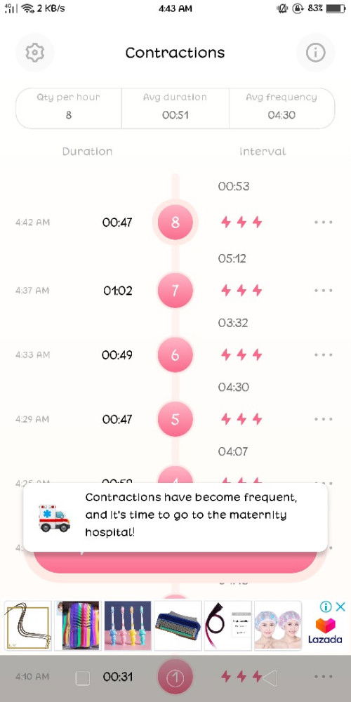 Contraction [5 minutes interval]