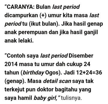 hahaha..mcm tak je..last period bln 10, umur 29..jumlahnya ganjil..keluar sketoi bby girl..hahaha 😉