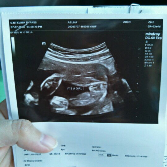 Nmpk mcm girl. Tp nanti utk confirm sis repeat scan balik. Takut dia sorok bebird je. Hehe 23weeks brapa berat baby ?