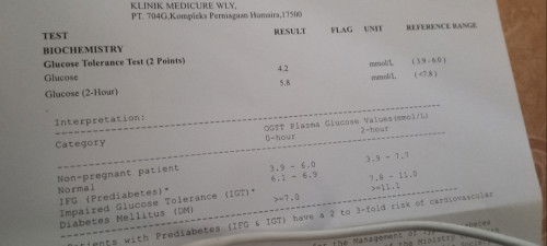 Hai momies²..sy nk tnya sy 1st mnm i gula.. prmulaan amik darah sblm mnm i gula tu 4.2, lps 2jam mnm i gula naik ke 5.8.. itu kira dah sangkut gdm ke??? Sbb sy tgok komen2 org dlm fb mngatakn klu preggy 5.1 ke bawah bru tiada gdm..bg org tak preggy bru lah 5.8 tu tiada gdm, org preggy 5.8 tu ada gdm ye?? Jd knq repeat mnm skli lg ye momies??