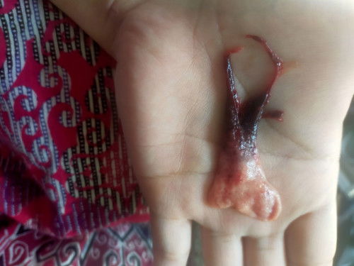Keluar ketulan seperti daging