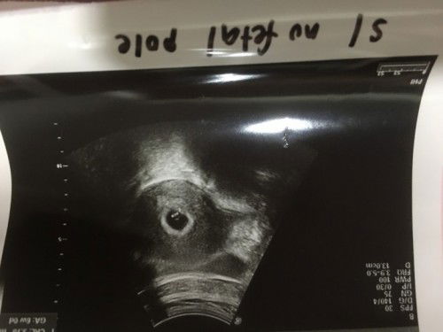 S / no fetal pole : sac with no fetal pole. Meaning ada kantung tp janin tak ada degupan jntung. Dktr suruh buat repeat scan utk check sama ada janin ada improvement or tidak.