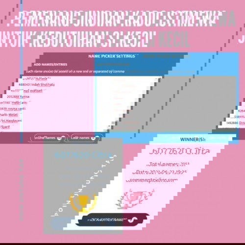 Hi, Bunsay! Waktunya pengumuman pemenang undian reward nih Bun, berikut adalah pemenang Poin Untung TAP 10 Juni 2021 ya๐ Ada 5 pemenang yaitu: 1. Pemenang [UNDIAN] Kado Istimewa Untuk Kebutuhan Si Kecil : Bunda Citra 2. Pemenang [UNDIAN] Hadiah Istimewa Untuk Bunda : Bunda Rubby 3. Pemenang [UNDIAN] Hadiah Istimewa Untuk Si Kecil : Bunda Friska Tamara 4. Pemenang [UNDIAN] Hadiah Seru Untuk Si Kecil : Bunda Tiwiendah 5. Pemenang [UNDIAN] Kado Istimewa Untuk Si Kecil : Bunda Viory Lestari SELAMAT YA UNTUK PEMENANG! Untuk pemenang akan dihubungi oleh Tim theAsianparent melalui whatsapp atau email. Silahkan Bunda nanti melakukan konfirmasi dengan mengirimkan nama, alamat, dan nomor telepon lengkap dan jelas tentu akan mempermudah pengiriman barang. Batas terakhir konfirmasi yaitu 14 hari setelah dihubungi oleh tim kami, jika tidak melakukan konfirmasi maka hadiah dianggap hangus. Jadi, jangan lupa untuk menyertakan biodata lengkap ya, Bun! Jangan lupa ya kasih bintang 5โ gampang banget caranya klik link ini aja Bunsay http://bit.ly/37hWWHa. TERIMA KASIH! Ditunggu Poin Untung TAP kloter berikutnya ya, Bun! Tentunya dengan hadiah-hadiah seru dan menarik lainnya๐