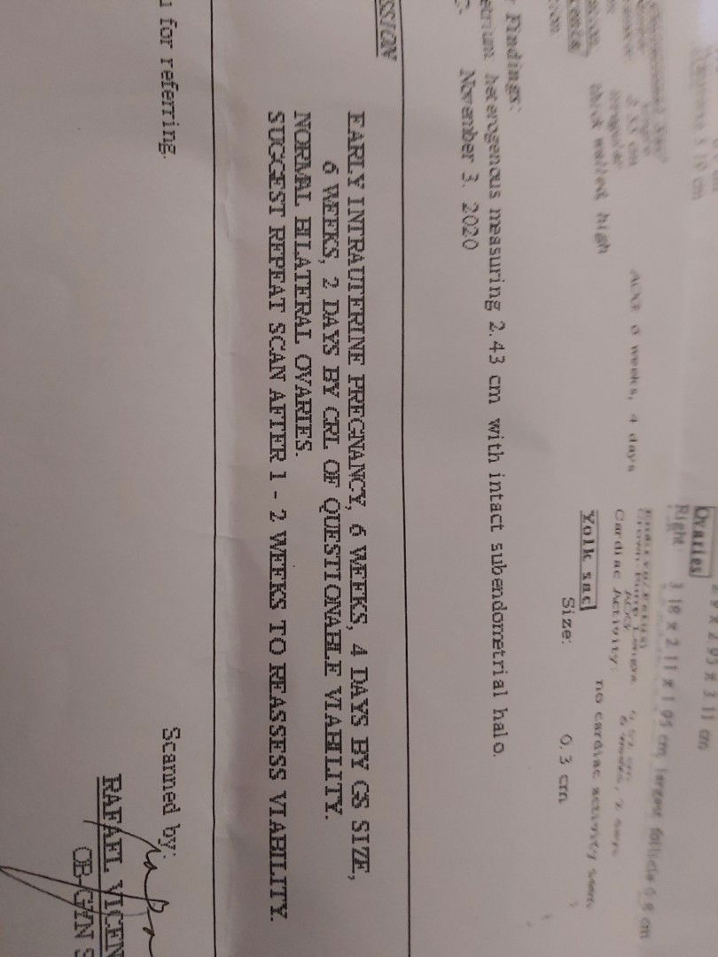 I'm 6 weeks & 4 days preggy to be exact today pero sa ultrasound wala pang heartbeat at ndi pa daw nag de2velop si baby, dpat daw may heartbeat na si baby and lumaki na im super afraid kasi sabi ni Ob kpag wala pa din daw heartbeat si baby by next week pwede daw ako makunan ?gusto ko mag pa ulit ng ultrasound after a month na para masiguro ? kasi naniniwala ako na medyo late lang katulad ng unang ultrasound ko sa kanya ?i need your advice mommies normal lang po ba ung ganitong case? I need your opinion and advice TIA