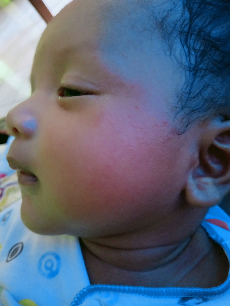 sepertinya ruam asi bun... rajin rajin dilap ya bun klo habis menyusui... soalnya biasanya asi suka mleber kepipi gitu