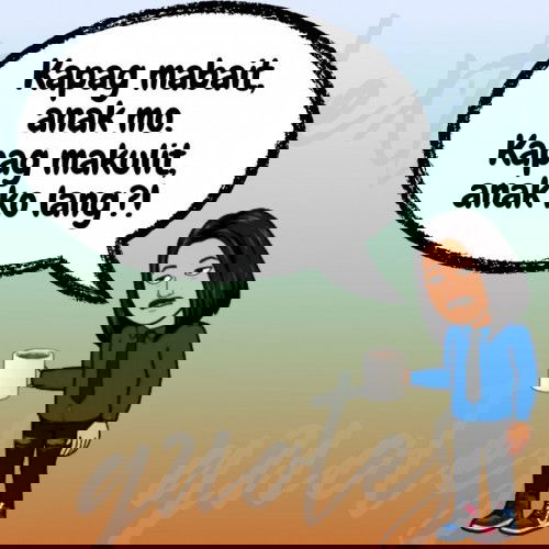 Kapag mabait, anak mo. Kapag makulit, anak ko lang?! Ganito rin ba kayo, mga mommy? Hahaha. Kapag cute na cute si baby, "napaka-cute talaga ng anak ko!" Kapag gumawa ng kalokohan, "Hoy! Yung anak mo! Kung anu-ano na naman ang ginagawa! Taas ang kamay, sino'ng guilty?