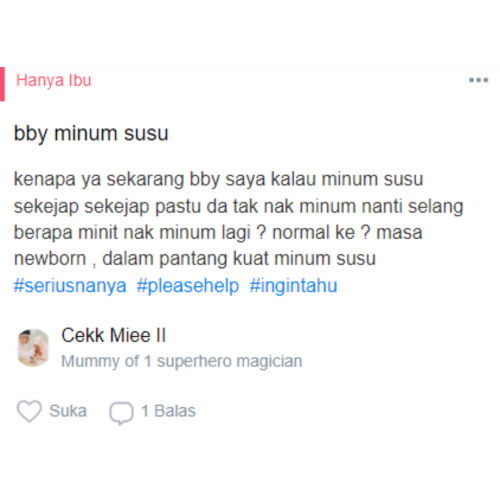 kenapa ya sekarang bby saya kalau minum susu sekejap sekejap pastu da tak nak minum nanti selang berapa minit nak minum lagi ? normal ke ? masa newborn , dalam pantang kuat minum susu #seriusnanya #pleasehelp #ingintahu