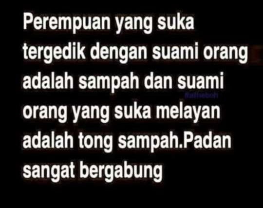 Menyampahkn prmon cm ni... Lg2 ble dh de laki, sebok nk whatsapp laki kte ari2... Gurau siap... Dduk dkt opis dkt2 pun nk berwhatsapp, klu btul de hal yg patut dibincangkn or bual kosong konon nk tnya tntg ank, g jek r dkt tmpt laki aku, biar bual skali dgn org sblh2 skali ke... Ni nk berwhatsapp bagai... Ble tnya suami baik2, mmg buang jauh mrh ni sbb xnk rosakkn hubungan ari tu... Dia nk mrh kte plak, ckp kte bodoh la... De setan jin yg hasut la... Hahahaaaa... Bleh plak terbaca ayat ni... Trasa btul la ek... Sampah... Maaf la luahkn rsa geram ni...
