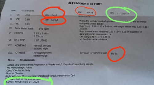 Hi mga mamsh first time preggy here. Baka may same sakin na ganito ang format ng result. Ask ko lang po ano po ba ang susundin para maidentify kung ilang weeks na? Ung AOG po ba or yung weeks ng GS or embryo? Tatlo po Kasi weeks na nakalagay CRL 6 weeks, GS 7 weeks, AOG 8 weeks 😅 dalawa rin yung nakalagay n estimated delivery date. Next week p kasi kami magkikita ng OB ko since holy week. Gsto ko lang magkaron ng initial clarification may nag aask kc kung ilang weeks na and hindi ko po alam isasagot. hehe thank you po sa sasagot!