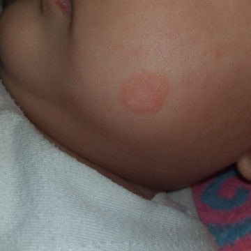 ringworm rash sis.. fungal infection po. apple cider vinegar pwede mo lagyan yung affected area. or mas ok patingin k po sa center para maresetahan or mabgyan kayo gamot