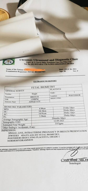 Hi mga mommies. Ask lang po ako kung okay result ng ultrasound ko. Bale sonologist po ang nag take ng PVS ko kasi wala ng available na OB sonologist and mag tatransfer din ako ng ibang OB since lilipat kami ng bahay. Aside po don sa "breech position" may iba pa po ba ako dapat ikabahala? Salamat po.