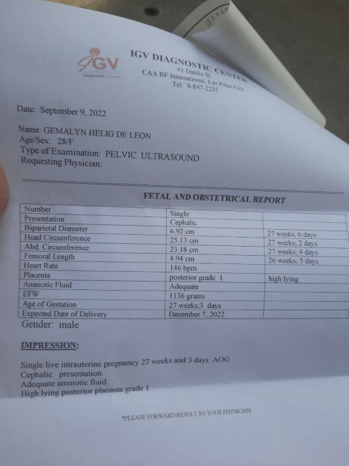 Mga momsh ok lang po kaya result ng ultrasound ko 27 weeks na po ko...thank you😊