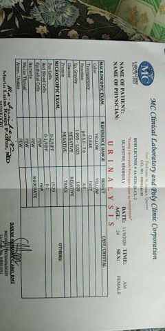 May UTI ka mamsh, may trace kasi ng protein sa urine mo. Mababa din hemoglobin,hematocrit at rbc mo. Low blood ka.