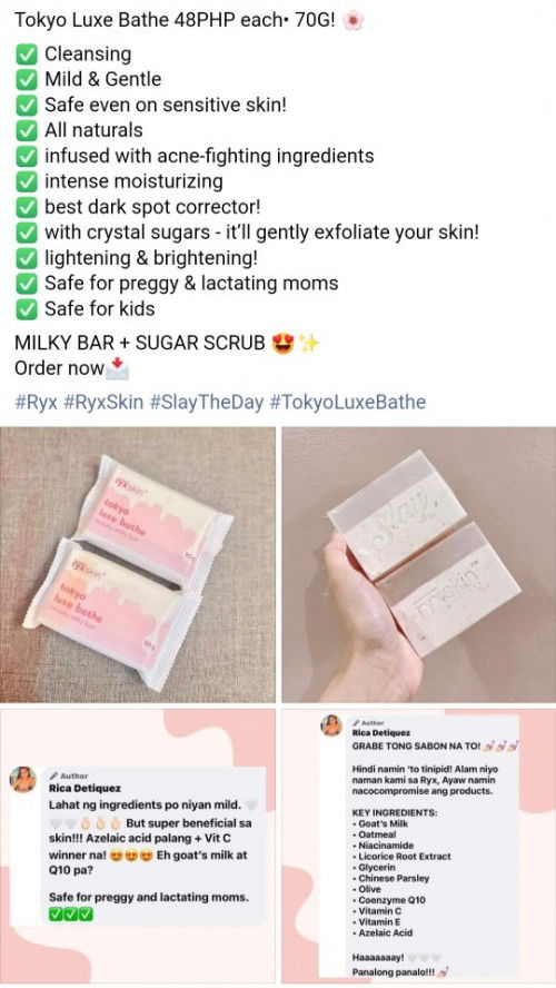 Hello mga sis, sino po gumagamit dito ng Ryxskincerity Tokyo Luxe bathe? yung bago po nila. Ang sabi kasi safe for pregnant naman daw, nag ask ako sa ob ko sabi nya lang naman stop ako sa paggamit nung whitening.