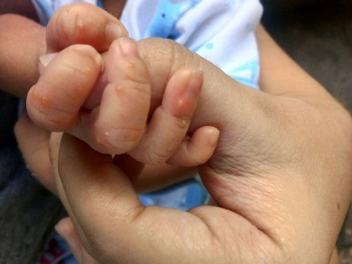 hi mommies. ano po kya itong nsa kamay at paa ni baby :( may nakaexperience napo b sa inyo ng ganto. thanks po.