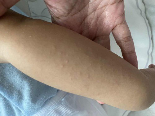 Hi mommies! Any of you have any idea what this is? It’s all over LO’s body except for palms and sole of feet. Bringing LO to the Dr soon. Just wanna check if any of your LOs had this before. It kinda look like eczema or measles. It’s not itchy or anything, no fever whatsoever. Thanks in advance!