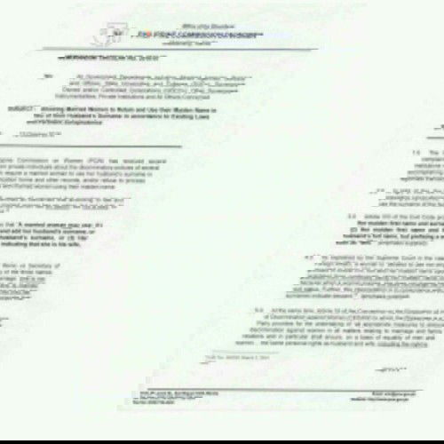 Hi, moms! I just want to share this very useful information to spread awareness and hopeful to empower us, women, more. Did you know that women have the option but are not obliged to change their last name and use their husband's last name after marriage? Yes, you've read that right. No law in the Civil Code nor jurisprudence forces us to do so. I have also attached here a memo for your reference. This might sound rare and inconvenient but let me tell you more. Changing last names once you get married is supposed to be an option, but tradition and status quo somehow forced us for centuries that once we get married, we โmustโ use our husband's last name. This, once done, has no effect with the legitimacy of our children. They will have his last name, all the benefits, privileges, and recognition of being his own. It is just me and what I chose my name to be. In my case, I am very lucky to have a really supportive and understanding husband that it is not an issue for him that I keep my full maiden name. But why did I want to keep my full maiden name? Because I like my name as it is. I feel a lot empowered and stronger with my name, with all the things that I have gone through and overcame alone before I and my husband were even together. Also, I wanted to keep my last name in memory of my father who passed away when I was 11 years old and no one is keeping his last name but me. I love my husband so much, only God knows. I honor him and he honors me, definitely. I am his and he's mine, absolutely. I am faithful to him as he is to me, WITHOUT QUESTIONS. This is neither arrogance not pride. This is breaking traditions, knowing and understanding my rights, and exercising my freewill. I posted this for awareness, not to try to convince nor persuade anyone about anything. Again, it is always an option. We all have freewill, we use it. God bless us!
