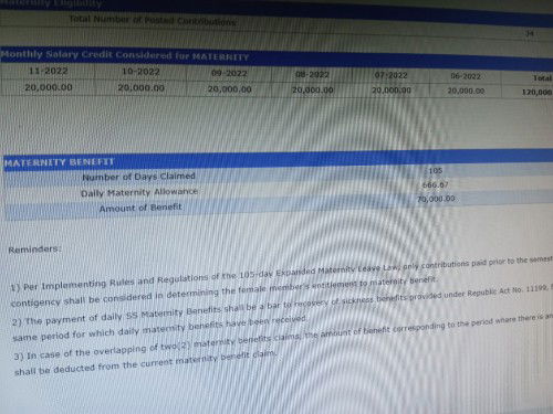 Hello po ask ko lang po, ito po ba talaga ung makukuha ko na maternity benefits po? sabi po kse sa eligibility daw po makikita tas pagtingin kopo ganto kalaki. tama po ba na ganyan talaga makukuha ko? hehe ask lang po