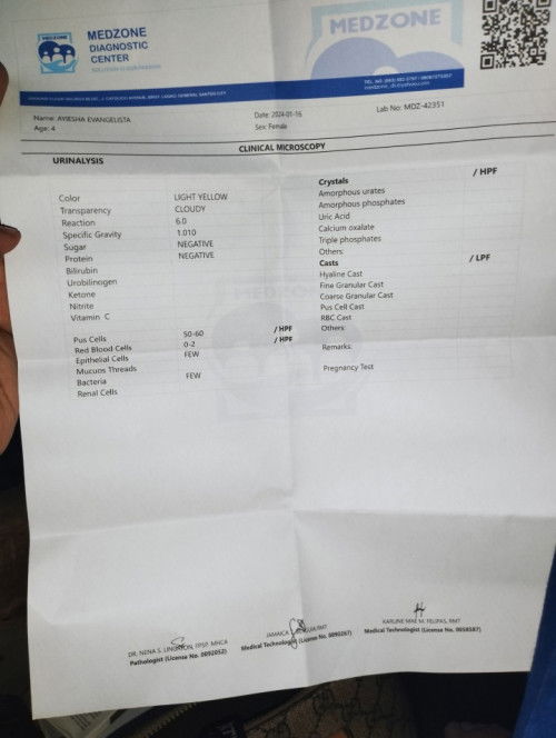 Hello po ask lng po sana ako kaka urinalysis lang po ng anak kung babae 4yrs old tapos result po ng Pus cells nya is 50-60 normal po ba yun? kasi ilang araw syang may browndischarge na parang may dugo and now yellow/white discharge parang nana or white blood kaya pina urinalysis po nami ano kaya ang ibig sabihin nito dilikado po ba? salamat po sa maka sagot. 🥺