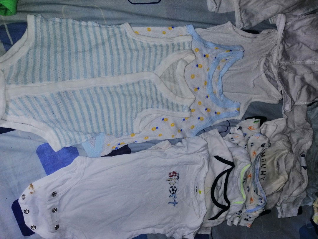 Preloved. Pamigay nalang kaysa itapon. 13 onesies 3button long sleeves 5 button down sando 2 tie sides sando 3 rompers 1 jacket pakihanap sa fb Va Ge so that I can send a video of the clothes.Please manage your expectations. May stains but washable naman. Sagot nyo na po shipping fee. From Olongapo pa po ako.