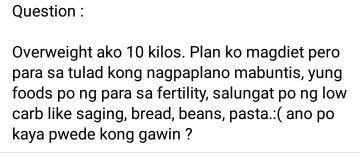 Magbasa panag low carb ako before magbuntis!! effective y sis basta magbawas lang po kayo paunti unti wg nyo po bibiglain π 2 months lng po nkapag loss ako ng 10kg at nabuntis ako. 35 weeks na ko ngayon β€οΈβ€οΈ