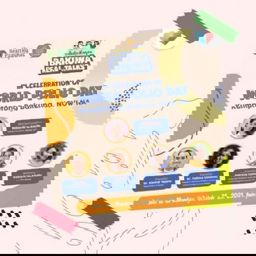 Sa paggunita ng World Polio Day, i-highlight din natin ang kahalagahan ng pagkumpleto ng mga bakuna ng ating mga anak lalo na sa panahon ng pandemya. Kasama ang moderator na si Nadine Smith, pag-uusapan nila Dr. Kim Patrick Tejano (Department of Health), Dr. Fatima Gimenez (Pediatric Infectious Disease Society of the Philippines), Ms. Patricia Gomez (Integrated Midwives Association of the Philippines) at Mommy Kaylynn Adolfo (Team BakuNanay) ang Kumpletong Bakuna, Now Na! sa FB page ng theAsianparent Philippines, October 25 (6pm). @theasianparent_ph @viparentsph #TeamBakuNanay #ProudToBeABakuNanay #VaccineWorksForAll #HealthierPhilippines #AllAboutBakuna #RESBakuna #BIDABAKUNATION