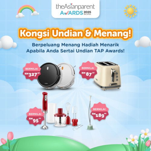 Sertai TAP Awards 2025 & menangi hadiah menarik seperti Xiaomi Robot Vacuum dan Russell Taylors Toaster! 1οΈβ£ Pastikan anda undi sekurang-kurangnya 8 kategori untuk layak memenangi hadiah. 2οΈβ£ Lagi banyak kategori anda undi, lebih tinggi peluang menang! π Jangan tunggu lagi, undi sekarang & menangi hadiah impian anda: https://awards.theasianparent.com/malaysia/