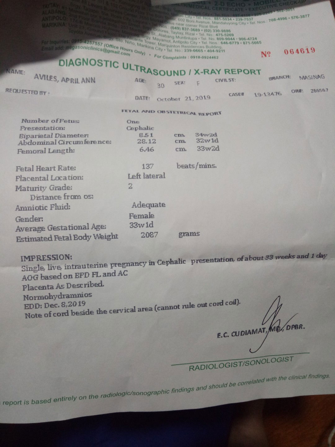 normal ung baby,pero my tendency ng cord coil, prepare for a c.s kung kakailanganin,pero kung vaginal birth nakaposition naman baby mo di ka mahi2rapan