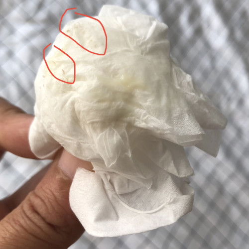 Hi sorry kalau gambar menggelikan tapi nak tanya pendapat, saya mengandung anak pertama sekarang 21 minggu. Keputihan tak banyak sangat tapi kadang2 ada la keluar sikit. Warna nampak normal, tak gatal dan tak berbau pelik. Cuma saya ragu2 yg panjang2 macam kulit mati/cacing kecil (dalam bulatan merah) tu apa ya? In case ada ibu2 kat sini yang jadi benda sama macam saya. Takut lak kalau kena GBS 😅. #SeriusTanya #ingintahu #firstmom #bantusharing