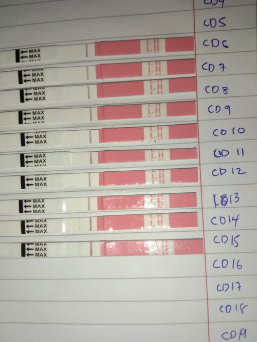 syarat OPK kena double line pekat or test line lebih pekat. jika cycle period on time setiap bulan, dlm cd16-cd18 ovulasi,klau period berubah-ubah maka hari ovulasi pun sama berubah. jd test ja sampai dapat terang .