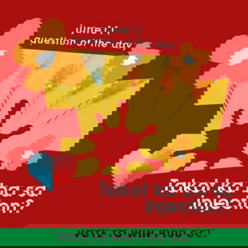 Takot ka ba sa injection? Answer our #QOTD and get a chance to win a P100 SM GC๐ฐ! 3 winners dahil happy weekend! ๐ JUST FOLLOW THESE STEPS ๐ ๐ถ STEP 1๏ธ: Vote on this poll (https://community.theasianparent.com/q/qotd-june11/3372003 ). ๐ถ STEP 2: Comment your answer below. Thatโs it. Hindi kailangan ng sobrang daming comment. Just 1 POLL VOTE and 1 COMMENT here. Oks na yun! Just be sure to do both. You may answer until 11:59 PM of June 12, 2021. Weโll announce the winners on June 13, kasabay ng bagong #QOTD. Ayos ba? ๐๐๐Our winner for #QOTD on June 9 is: Christine Grace Miraflor ๐๐๐ Congratulations! Mommy Christine, please e-mail your name and contact details to [email protected] (subject: QOTD - June 9). โกREMINDER! Sa past winners, please donโt forget to send me an e-mail. Hindi ko mapapadala ang prize nโyo if you donโt send me an e-mail. Thanks!โก