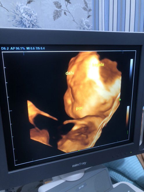 Hehe iyaa dpt si cantik lagii Posisi janin udh dibawah bu, lgi tdrn hadap samping kata dokternya😁 Mangkannya kmrin perutku di goyang2 ma dokternya, biar tanganya ga nutupin wajah