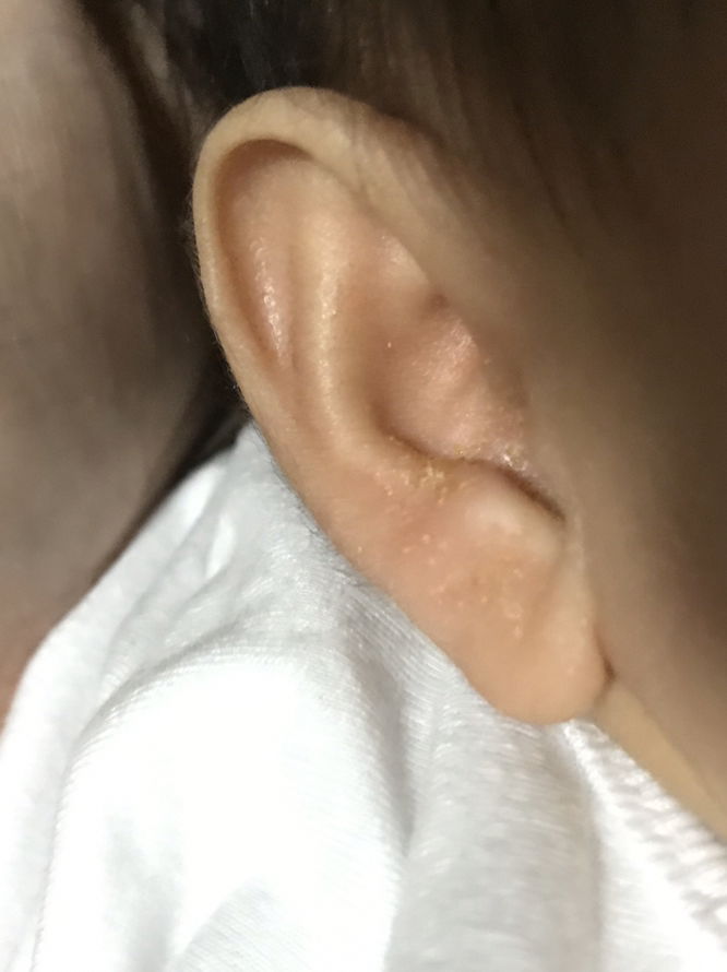 Cradle cap or yung flaky yellow na parang dandruff sa ulo, face at ears ni baby. Normal po yan. Kusa pong mawawala yan pag 2 or mga 3 months na siya kaya wag niyo pong kukutkutin. Ako kasi di ko napigilan ayun namula tas nairritate ears ni lo ko. ๐ Pero ngayon makinis na siya.